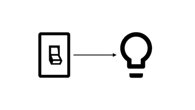 Let's start with a simple example: a switch and a light bulb. As you flick the switch, the light bulb turns on and off.