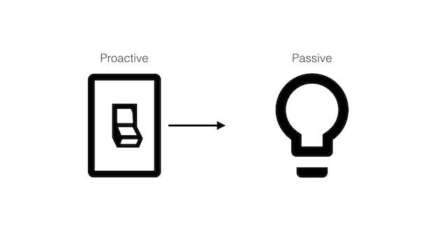 The first difference is who controls the LightBulb. In the proactive model, it must be some external component that calls LightBulb.power(). With reactive, it is the LightBulb itself that controls its luminosity.