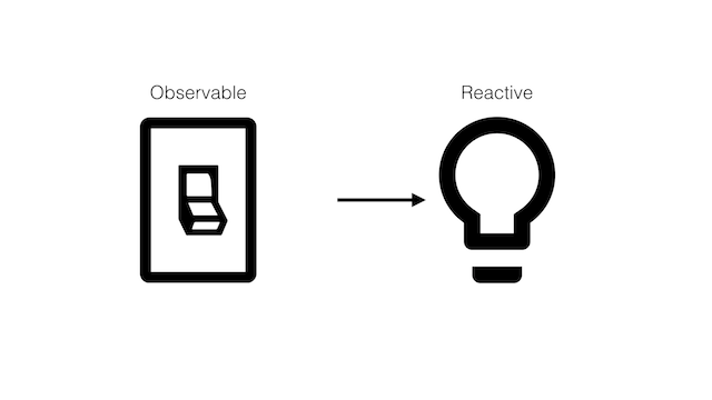 The other way to couple these components would be to have the bulb listen to the state of the switch then modify itself accordingly. In this model, the bulb is reactive, changing its state based on the switch's state; whereas the switch is observable, in that others can observe its state changes.