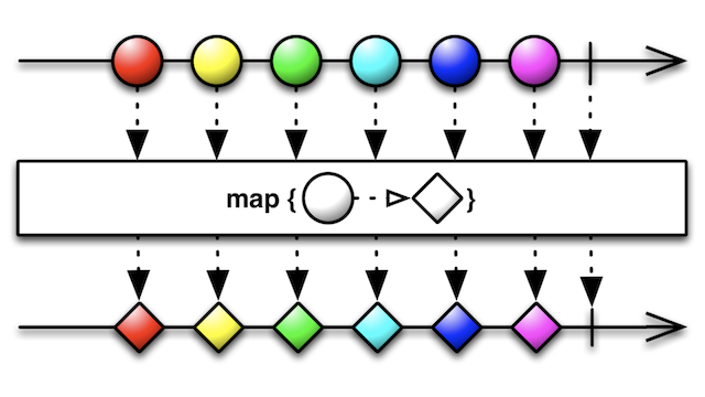 Ta-da: here's map(), but for Observable. Observable.map() is what's known as an operator. Operators let you transform an Observable stream in basically any way imagineable.