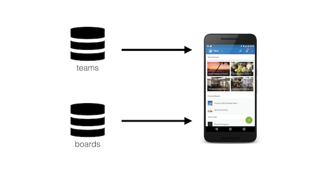 In particular, we've got source of teams, and inside of each team there can be multiple boards. We want to make sure that we're receiving this data in sync; we don't want to have mismatched data, such as a board without its parent team.