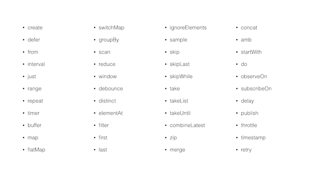 However, the goal of these operators isn't to overwhelm - it's to model typical flows of data within an application. They're your friends, not your enemies.